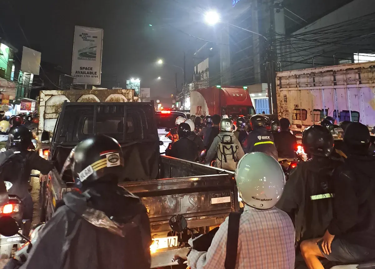 Arus kendaraan langsung terganggu ketika banjir merendam kawasan Bojongsoang dan memaksa pengendara memadati jalur kecil yang tidak didesain menampung beban lalu lintas besar. Situasi ini menunjukkan bahwa rute alternatif di wilayah tersebut belum berfungsi memadai saat bencana melanda.