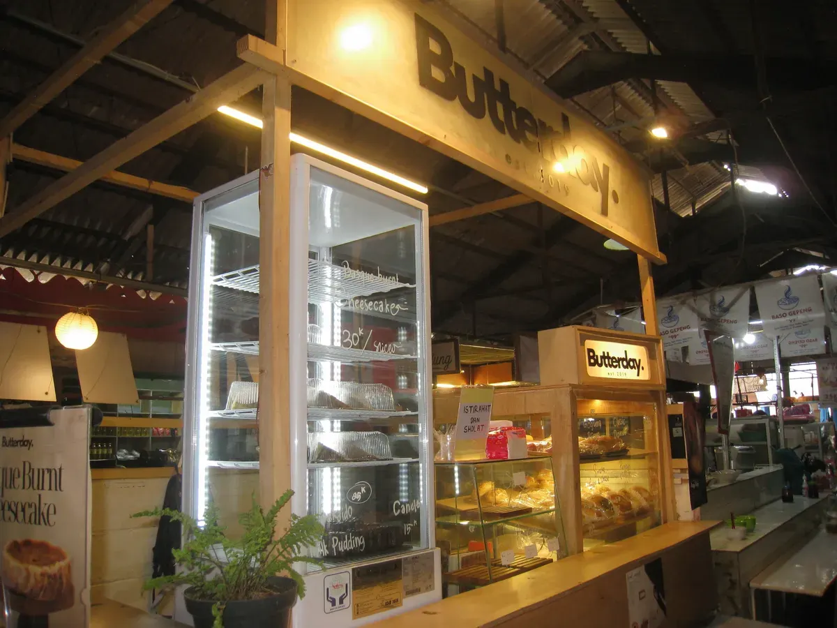 Butterday jadi salah satu tempat dessert yang bisa ditemui saat menyusuri Pasar Cihapit. Tempatnya kecil dan sederhana, dengan etalase yang menampilkan berbagai pilihan roti dan dessert. Di sini tersedia aneka roti, donat, cheesecake, hingga menu seperti ggoguma pang dan banana pudding.