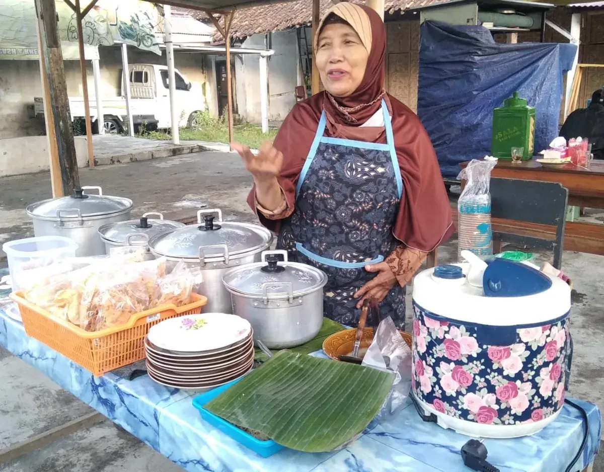 Tak ditemukan nasi kuning, kupat tahu, bubur ayam, lontong kari, berbagai gorengan atau ketoprak sebagaimana halnya suasana pagi hari di Bandung, tetapi yang saya temukan adalah sebuah jongko—sebuah meja penuh panci dan piring-- yang dijaga seorang mbok-mbok berusia 65 tahun. Ya, si mbok ramah yang bernama Tarsiyem itu seorang pedagang Bubur Kerecek, makanan tradisional khas Yogyakarta.