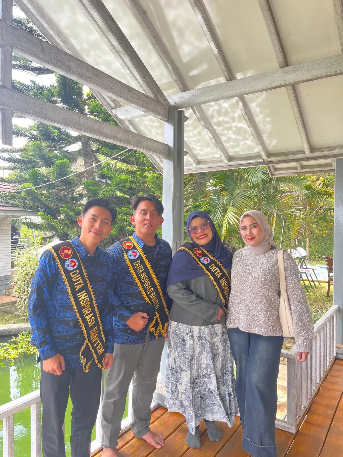 Dalam momen kebersamaan tersebut, tampak Ka Safhira Al Farisi berfoto bersama beberapa sosok berprestasi yang mengenakan selempang "Duta Inspirasi Banten".