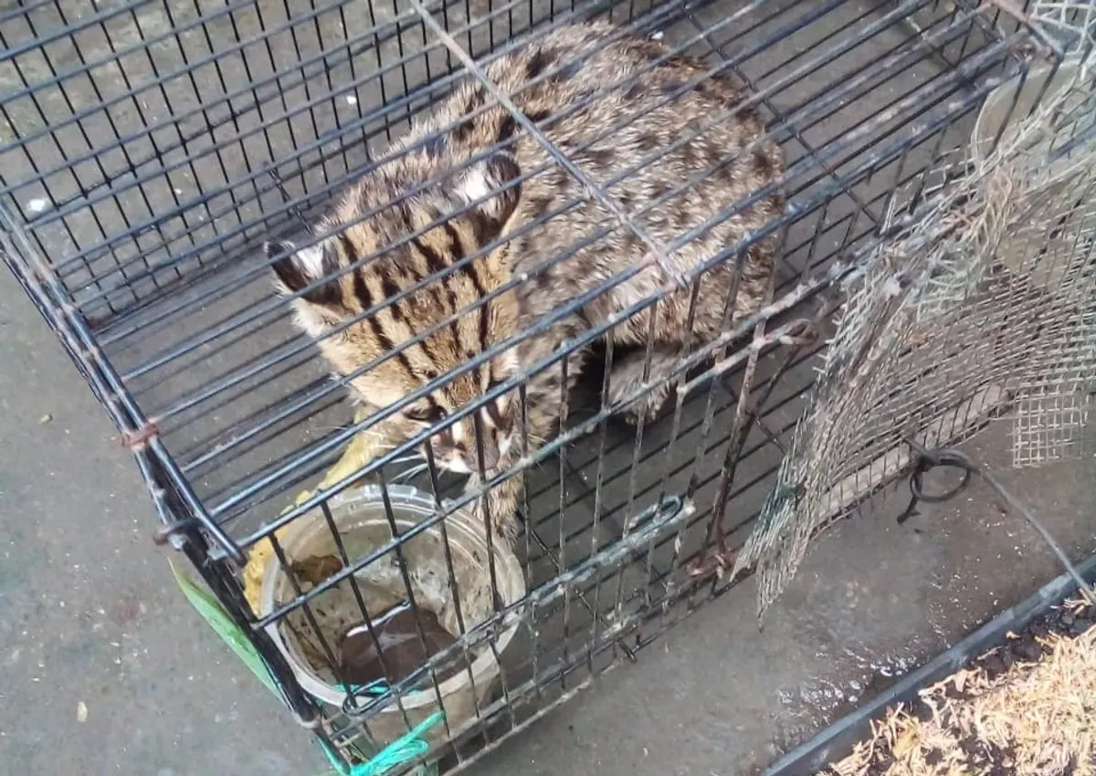 Lalu, warga berdatangan. Kemudian, kucing hutan alias meong congkok itu berhasil ditangkap oleh Adi (11) seorang anak dengan menggunakan jaring untuk menangkap ikan. Lalu, meong congkok itu dimasukkan ke kandang besi.