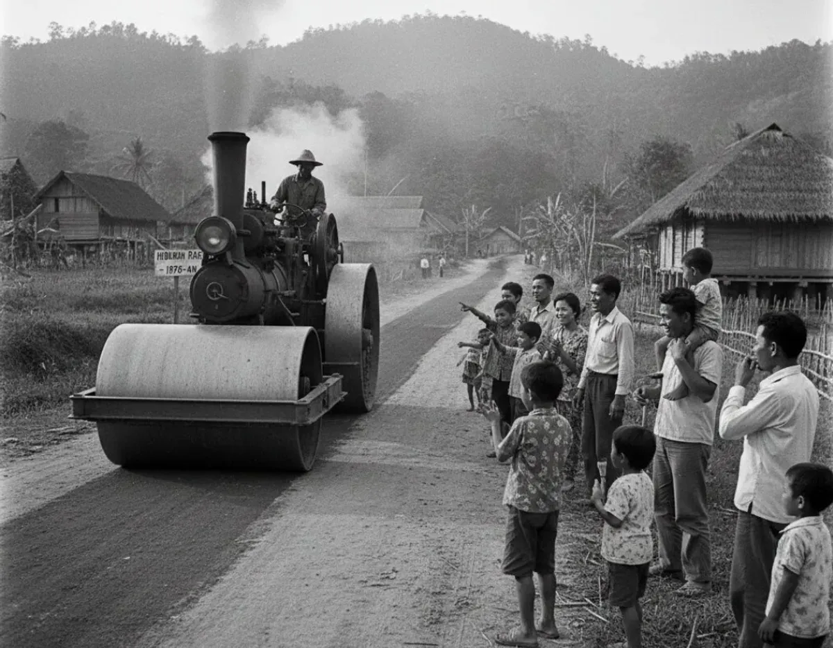 Kala itu, jika ada stum meratakan jalan di dekat kampung, saya dan teman-teman selalu menyempatkan diri menonton. Sepulang sekolah atau sore hari, kami berkumpul di pinggir jalan, terpaku menyaksikan mesin besar itu bergerak perlahan sambil menggetarkan tanah. Ketika pekerja berhenti dan stum beristirahat, kami memberanikan diri meminta izin kepada operator untuk sekadar naik dan duduk di atasnya. Kadang kami bahkan diizinkan ikut naik sebentar saat mesin berjalan. Betapa bangganya kami. Pengalaman itu menjadi cerita seru yang dengan penuh antusias kami bagikan kepada teman-teman lain.
