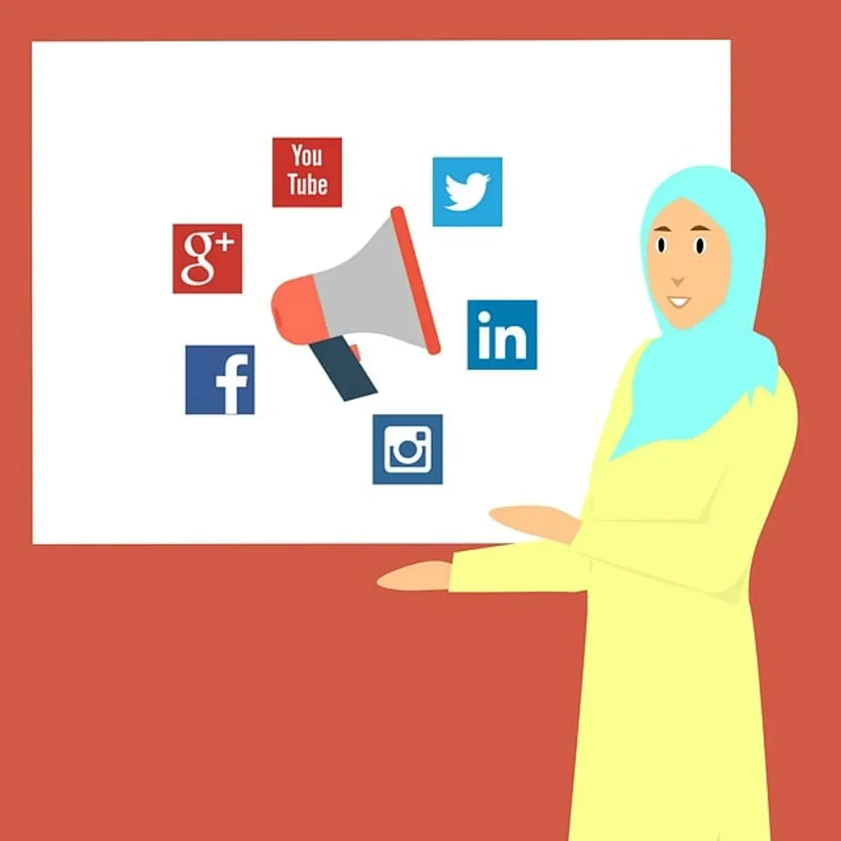 Animasi perempuan berjilbab yang memanfaatkan beragam platform media sosial untuk berbagai kepentingan (Sumber: pixabay | Foto: Mohame Hassan (Pixabay)