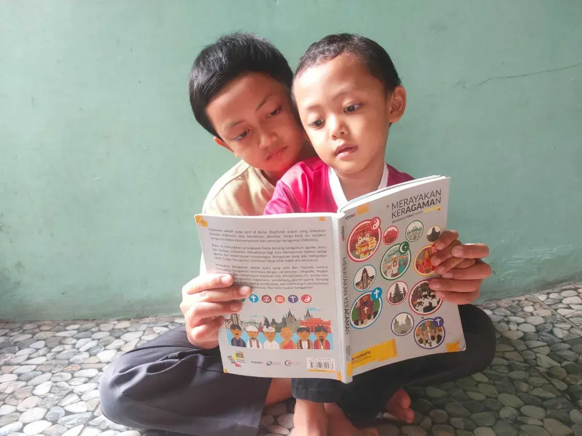 Tiba-tiba, bocah kelas lima SD itu menutup korannya. Lantas bergegas masuk ke kamar yang sering disebut perpustakaan ala kadarnya. Tak lama, keluar sambil membawa buku berjudul Merayakan Keragaman.