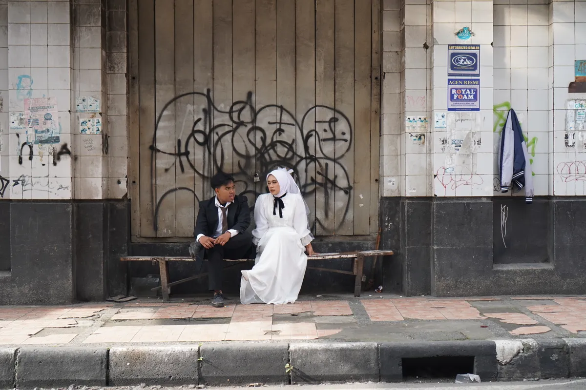 Di tengah jalan yang biasanya dipadati kendaraan, tampak pemandangan tak biasa. Sepasang pengantin berdiri di trotoar. Pria dengan balutan jas hitam dan wanitanya memakai gaun putih. Sementara seorang fotografer bersiap dengan kamera. Jalan ABC pagi itu seakan berhenti sejenak—bukan karena macet, melainkan karena cinta dan janji hidup.