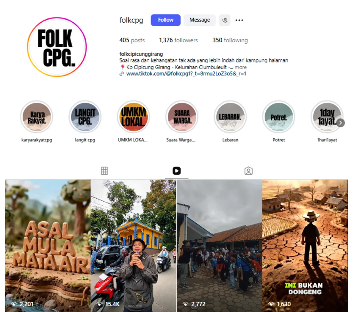 “Bukan soal engagement. Yang penting saya bisa membantu menyebarkan informasi ke warga dan mengenalkan Cipicung Girang ke lebih banyak orang,” tuturnya.