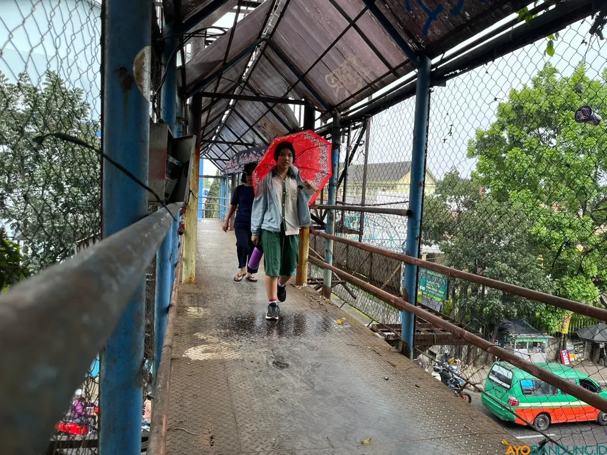 AYOBANDUNG.ID - Di Jalan Amir Machmud, perbatasan Kota Bandung dan Cimahi, arus kendaraan hampir tak pernah berhenti. Motor dan mobil melintas cepat sejak pagi hingga sore hari. Di tengah padatnya lalu lintas itu, sebuah jembatan penyeberangan orang (JPO) berdiri sebagai jalur aman bagi pejalan kaki, terutama pelajar yang setiap hari harus menyeberang.