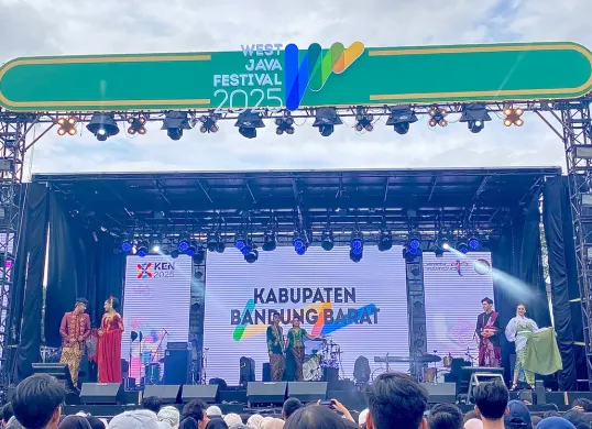 Mojang Jajaka tampilkan fashion show tradisional baju adat di West Java Festival 2025.
