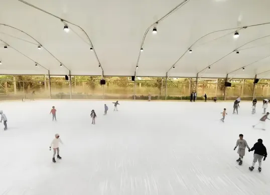 Sensasi meluncur di atas es dengan latar taman hijau, arena semi outdoor pertama di Indonesia ini jadi spot seru.