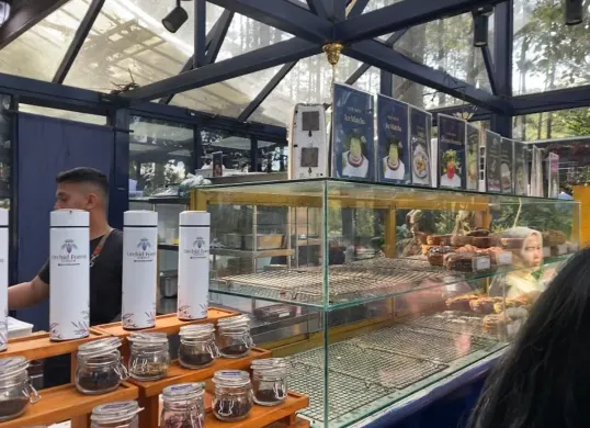 Golden Pine Cafe di tengah hutan pinus Orchid Forest Cikole Lembang, sajikan kopi khas, hidangan hangat, dan panorama alam sejuk yang memesona.