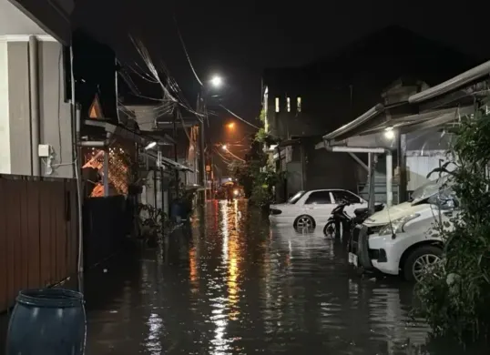 Banjir setinggi lutut kembali merendam Komplek Griya Bandung Asri 1, Bojongsoang, menghambat mobilitas warga.