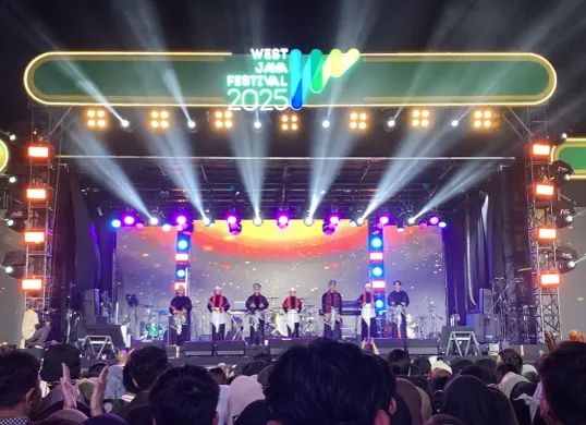 Aksi Padepokan Kasundan dalam ajang West Java Festival (WJF) 2025 di Kiara Artha Park, Bandung.