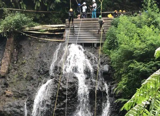 Curug Tilu Leuwi Opat jadi destinasi rappelling & canyoneering aman untuk pemula, termasuk anak 4 tahun hingga lansia 72 tahun.