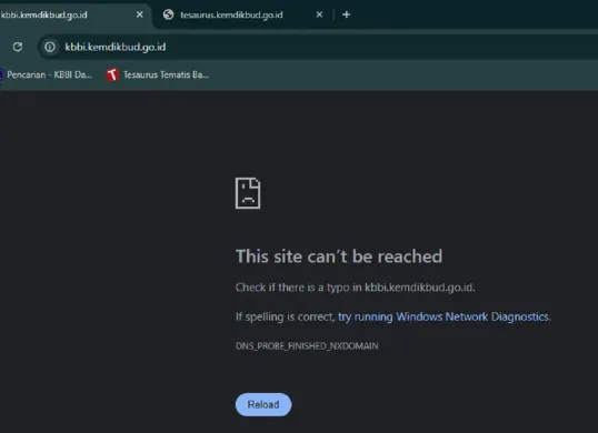 Website KBBI Daring dan Tesaurus Tematis Bahasa Indonesia masih tidak dapat diakses oleh masyarakat.