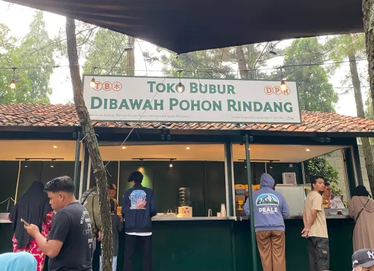 Salah satu yang belakangan banyak dibicarakan adalah Toko Bubur di Bawah Pohon Rindang di kawasan Pinus Regency.